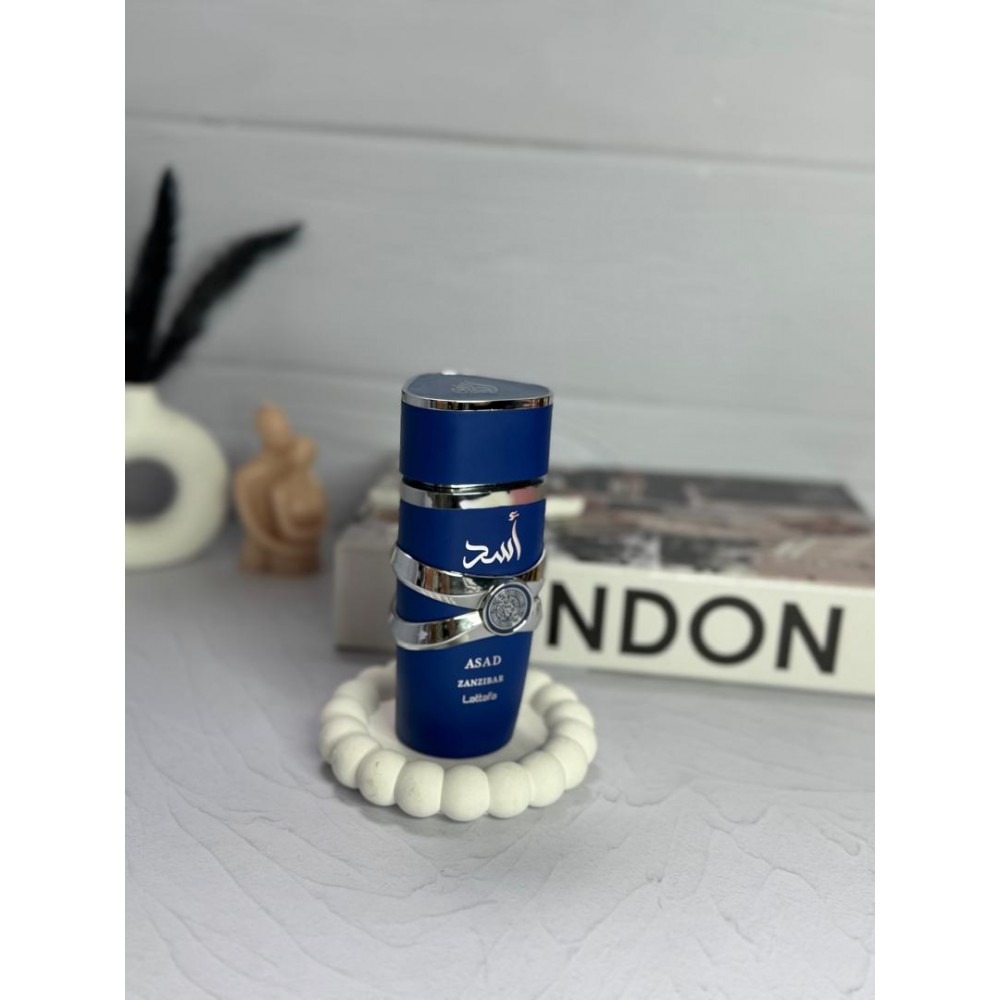 مدل اسد زنزیبار آبی Lattafa Asad Zanzibar عطری مردانه و منحصر به فرد. عطر ادکلن Lattafa Asad Zanzibar با رایحه تلخ و تند کمی شیرین توسط شرکت لطافه طراحی و روانه بازار شد. توسط عطار معروف فانی بال ترکیبات این عطر را چنان هنرمندانه در کنار یکدیگر قرار داده است که نتیجه قطعا برای هرکسی جذاب خواهد بود. عطر لوکس  Lattafa Asad Zanzibar سرشار از نت های آرماتیک و ادویه ای تازه است . عطری پر از حال خوب و انرژی، در عین اینکه به شما آرامش می دهد.