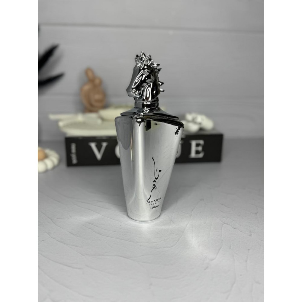 عطر ادکلن لطافه ماهر لگاسی نقره ای | Lattafa Maahir Legacy لطافه عطری مردانه زنانه و شیک است و رایحه ی ملایم و شیرین کمی تلخ دارد و رایحه ای شفاف از سبک ورزشی عطرهای مطرح دنیاست. با نگاه کردن به شیشه ماهر نقره ای لطافه متوجه طراحی جوان پسند و ورزشی آن خواهید شد. این عطر ادکلن عربیمردانه با گروه بویایی چوبی برای فصول گرم سال پیشنهاد می شود.